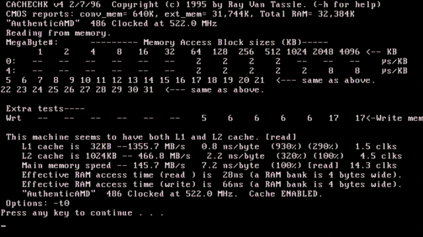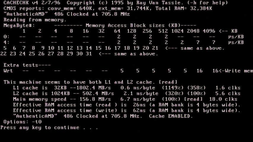 I then used CacheChk to verify the onboard Level 2 cache size and get some memory performance info: