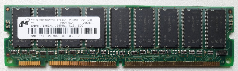 I have about 18 sticks of DIMM memory to choose from in the collection. Most of them are PC100 and a few are PC133. The M590 only supports up to PC100 memory, so I have chosen two of these: