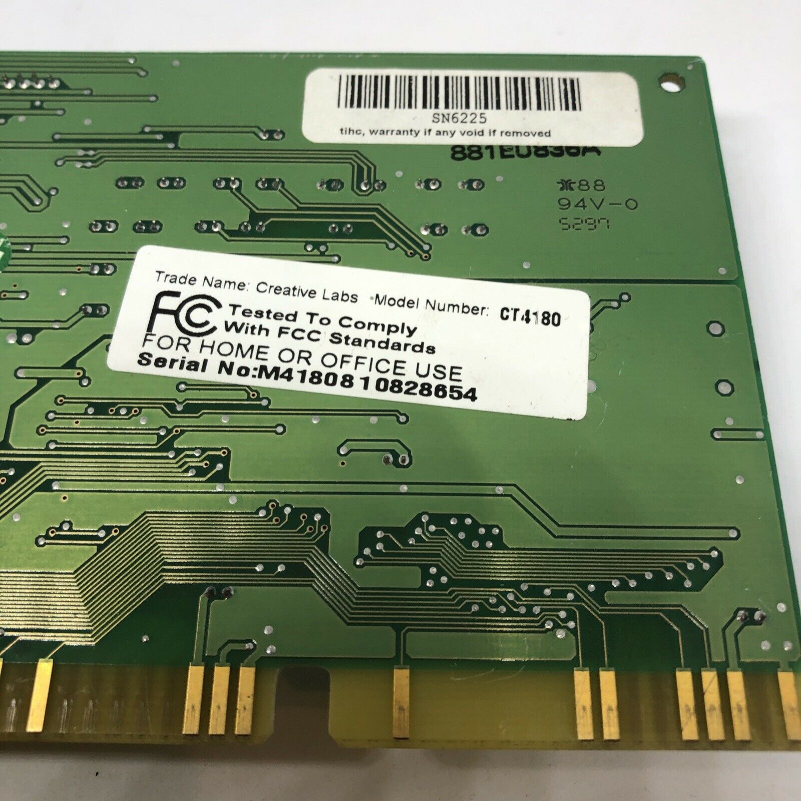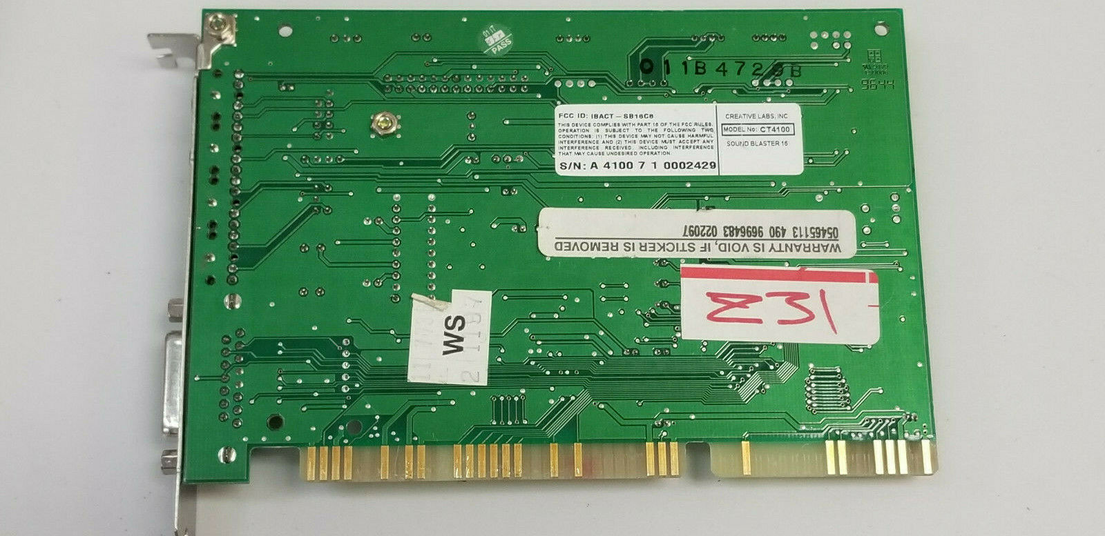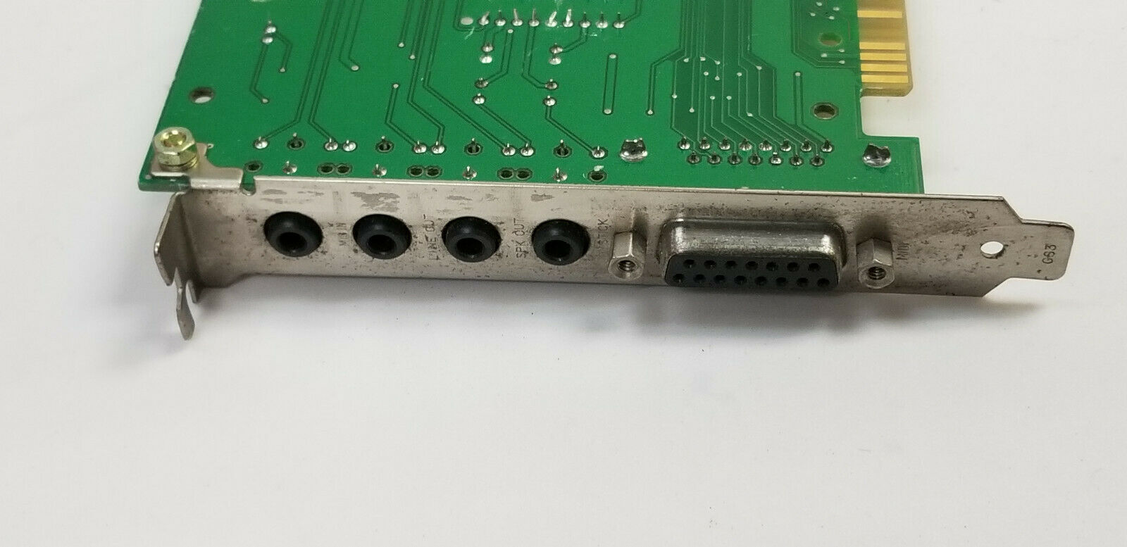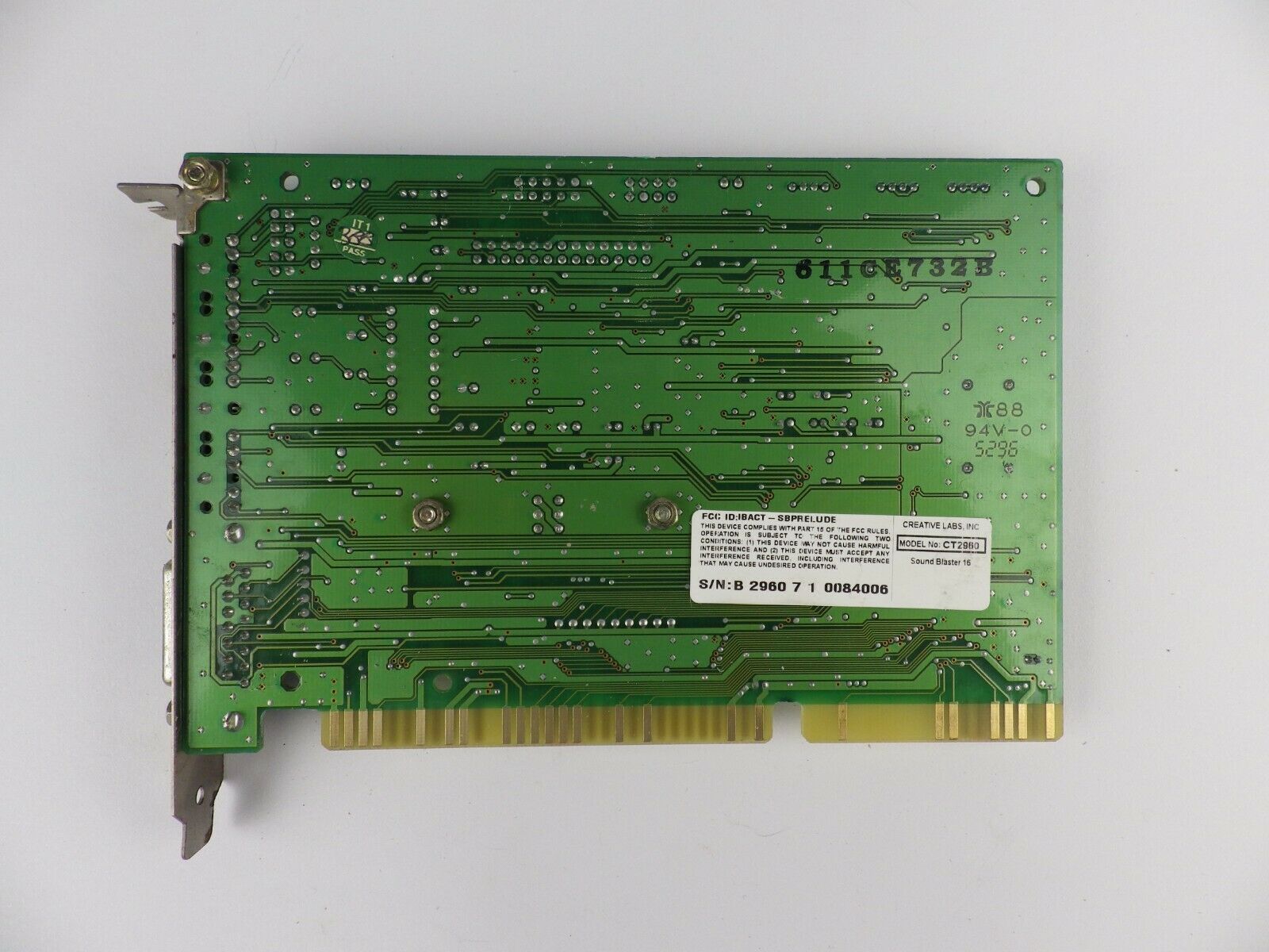 The CT4810, or to give it its full title, Sound Blaster ViBRA 128, was based around the Ensoniq AudioPCI chip, ES1373. ES1373 was a slightly updated version of their earlier ES1371, adding I2S In or S/PDIF Output (the blue Line-In and green Line-Out sockets double up to support these respectively).