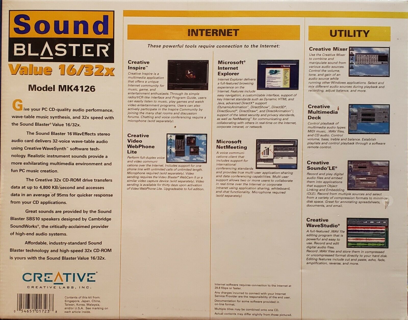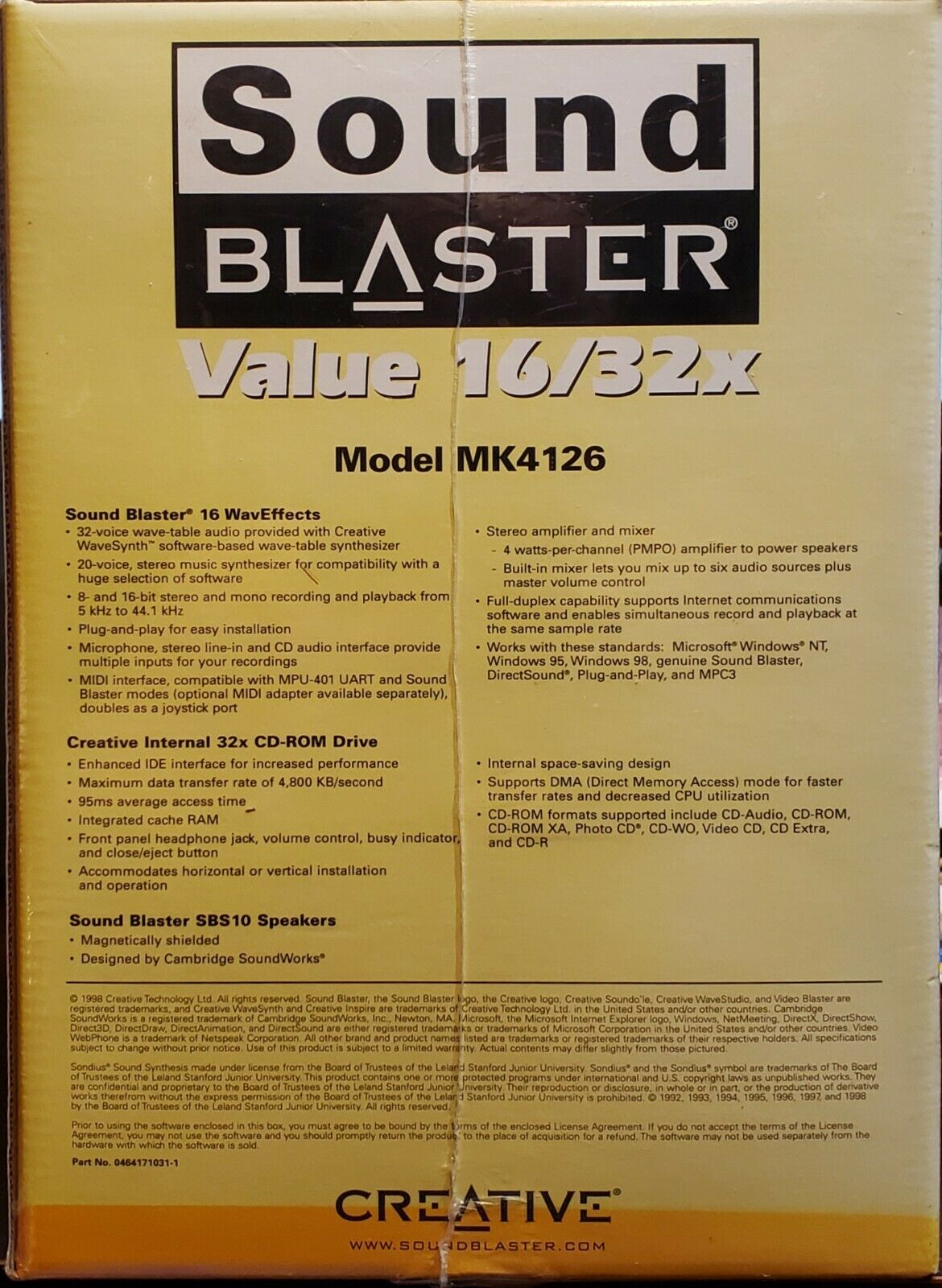 The CT4170 was sold as a bundle with a pair of SBS10 speakers and a 32x CD-ROM drive, called the Sound Blaster Value 16/32X.