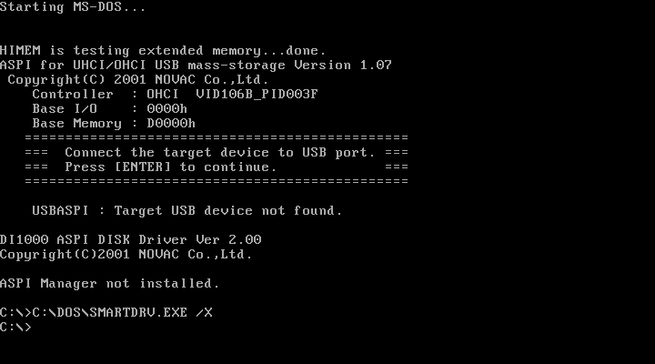 Of course, being DOS, there are still file system constraints and disk size constraints that cannot be overcome, and the majority of USB sticks, SD cards, and USB hard disks all far exceed these DOS limits. In the case of USB sticks and USB hard disks, make sure the partition is 500 MB or smaller in size or the driver will fail. It also needs to be formatted as a FAT-16 partition, since FAT-32 is not supported in DOS.