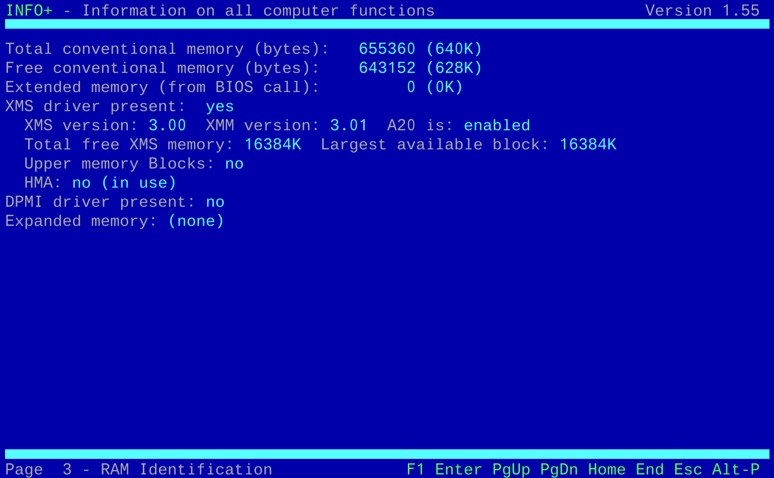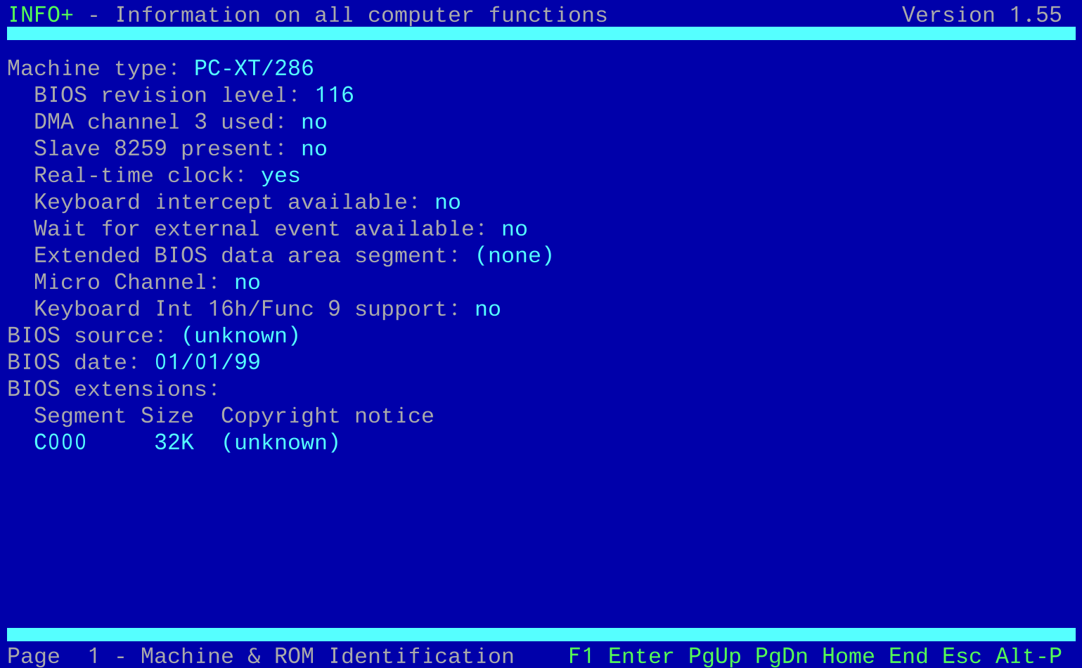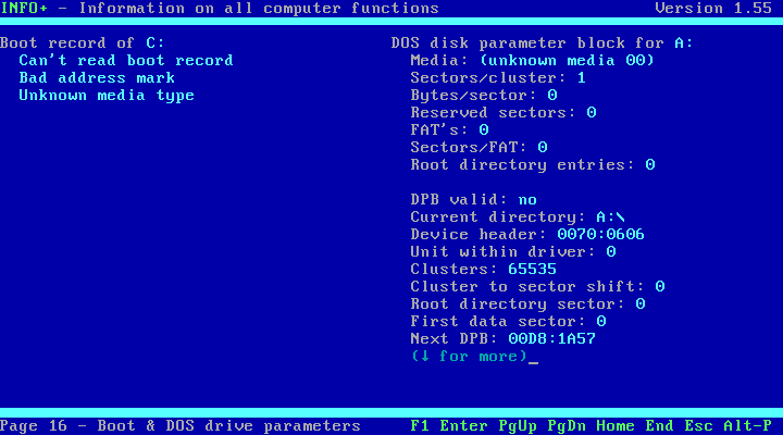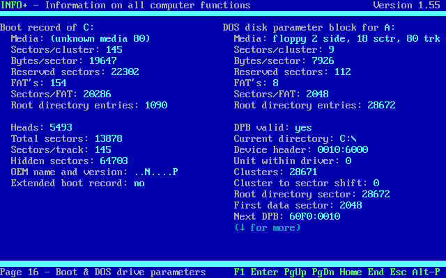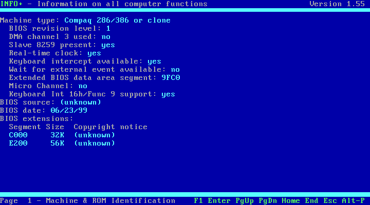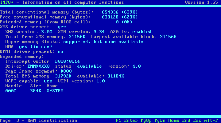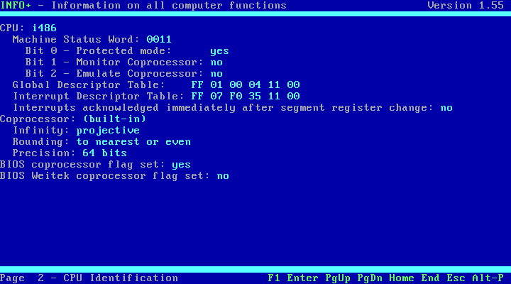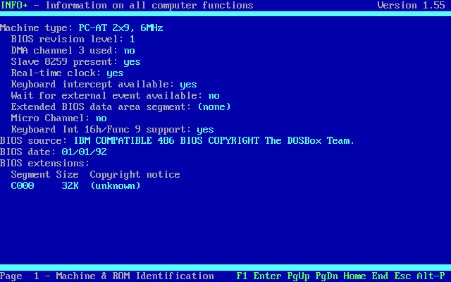 Before I get into testing how applications are able to function, let's take a look at what is being reported as the "guest" operating system. NSSI (Navratil) only worked on DOSBox - with vDosPlus and VirtualBox it crashed on startup while it was detecting SMBIOS/DMI, so I reverted to the older and more simple InfoPlus: