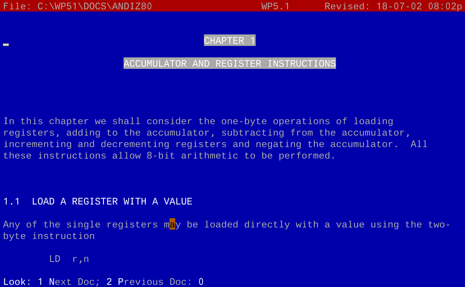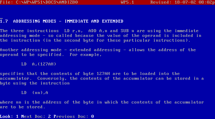 The most popular word processors in the DOS era were WordStar and WordPerfect. There are many others, but for this test I'll just use these two: