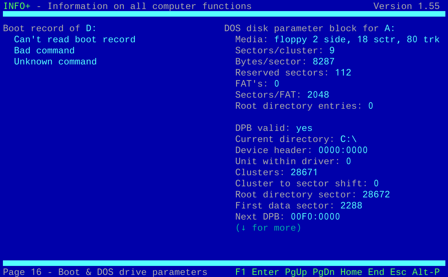vDosPlus 2017.08.01 (build 2018.03.01) running InfoPlus 1.55