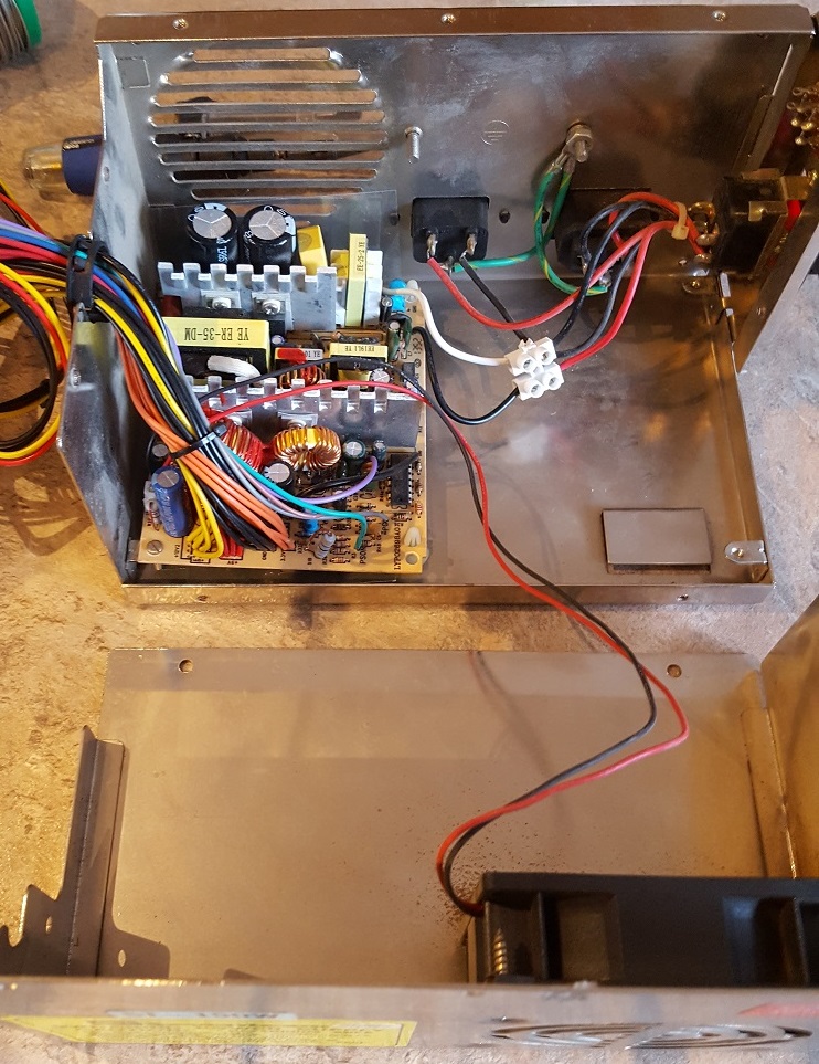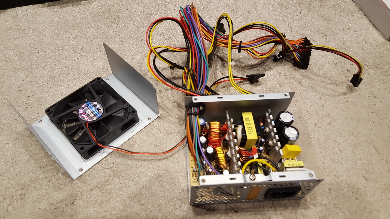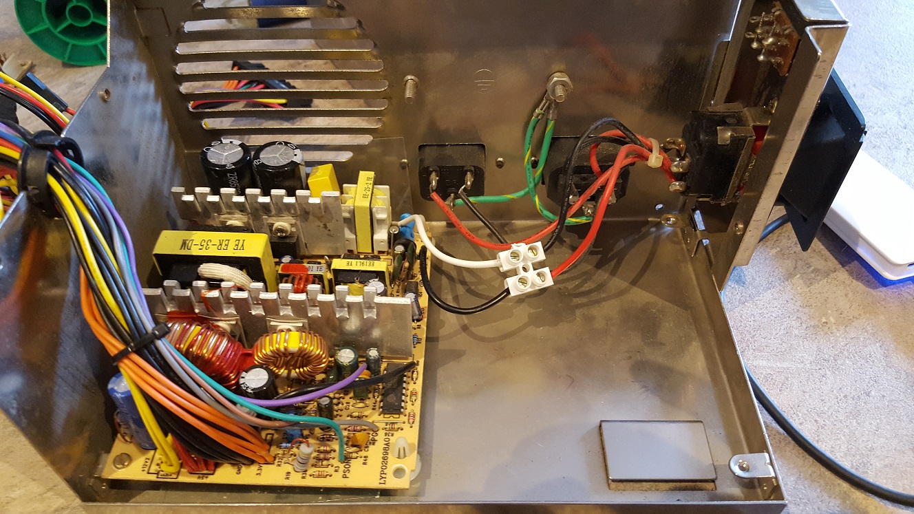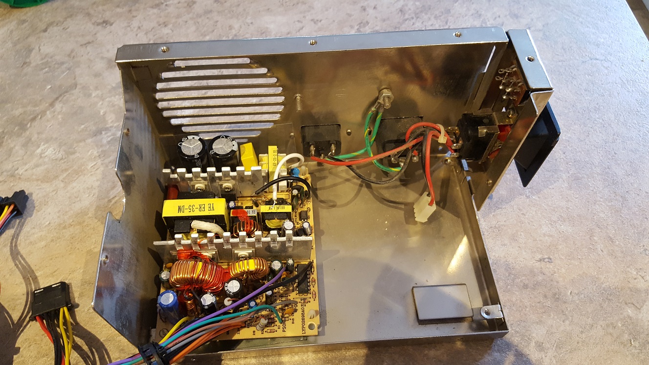 Let's begin Part 3 with the power supply swap-out. I wanted to retain the aesthetic of the original case, so that means re-using the same power supply casing with the large on/off switch on the side of the PC system unit. The old Seventeam PSU's internals are dead, so I'm going to use a cheap-as-chips ATX power supply as a donor.