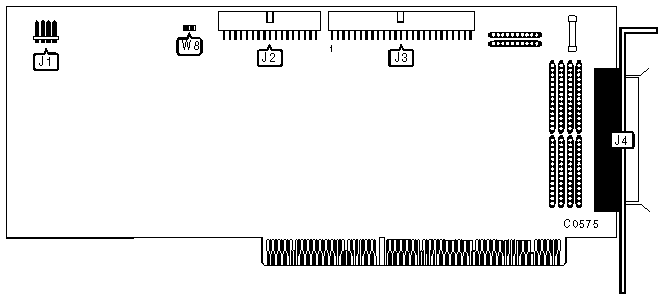 Note (1):The floppy drive controller can be enabled any one of three ways: (a) close jumper W8, or (b) close pins 41 & 42 of connector J3, or (c) select the floppy disk controller enabled option in the EISA configuration file. Note (2):To disable the floppy disk controller, all three of the above options must be disabled: (a) open jumper W8, and (b) open pins 41 & 42 of connector J3, and (c) select the floppy disk controller disabled option in the EISA configuration file. | |||