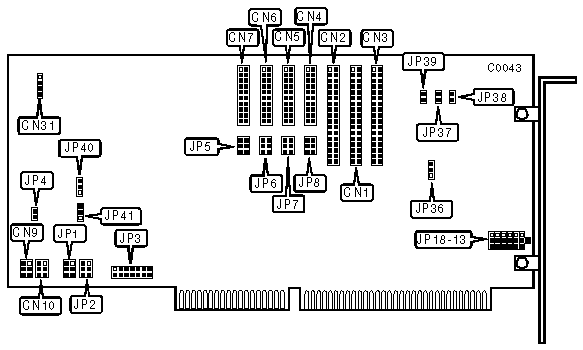 The BIOS address settings range is C800 - E000 and is selected with JP12-19 using a binary translation. JP12 (LSB) and JP19 (MSB) are internal and assumed to be 0 and 1 respectively. JP13 - JP18 are set: pins 1-2 closed= 1; pins 2-3 closed= 0. Default is C8000: