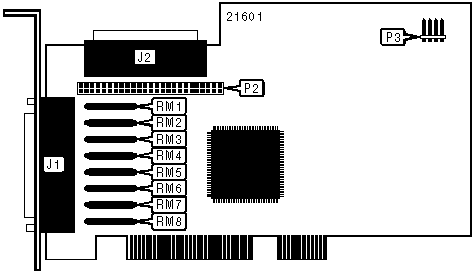When wide devices are connected to J1 and J2 remove all the terminators (RM1-RM8.) For all other combinations, RM4-RM8 should be removed. |