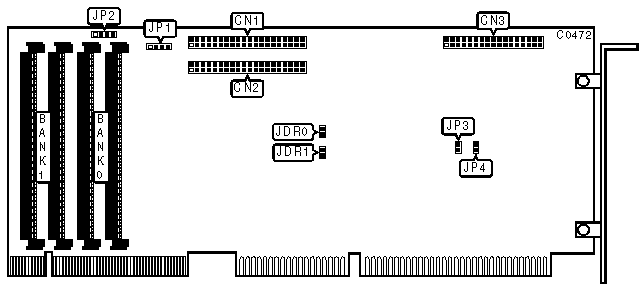 Some versions of this board have two 512KB x 8 DRAM chips mounted in place of Bank 0. In such a case the board will work without additional memory. In all other cases a pair of 256KB, 1MB, or 4MB SIMM modules must be installed in Bank 0 for the board to function. Jumpers JP3 and JP4 are factory-configured - do not alter. |