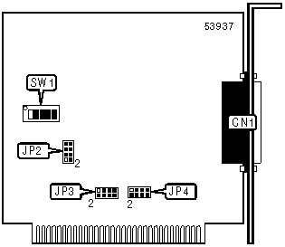 Note: A total of 32 base address settings are available. The switches are a binary representation of the decimal memory addresses. SW1/10 is the Most Significant Bit and switch SW1/5 is the Least Significant Bit. The switches have the following decimal values: SW1/5=512, SW1/4=256, SW1/3=128, SW1/2=64, SW1/1=326. Turn off the switches and add the values of the switches to 512 and convert to hexadecimal to obtain the correct memory address. (Off=1, On=0)