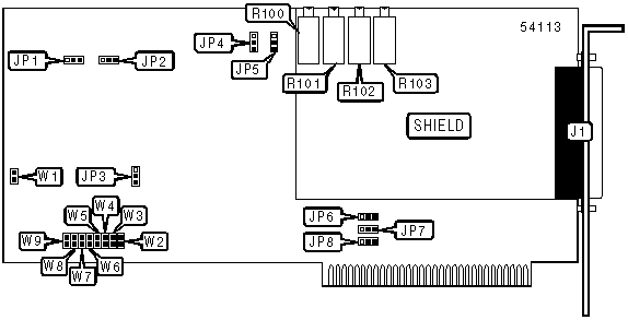 Note: A total of 256 base address settings are available. The jumpers are a binary representation of the decimal memory addresses. W9 is the Most Significant Bit and jumper W2 is the Least Significant Bit. The jumpers have the following decimal values: W9=2048, W8=1024, W7=512, W6=256, W5=128, W4=64, W3=32, W2=16. Turn off the switches and add the values of the switches to obtain the correct memory address. (Close=1, Open=0) | |||||||||