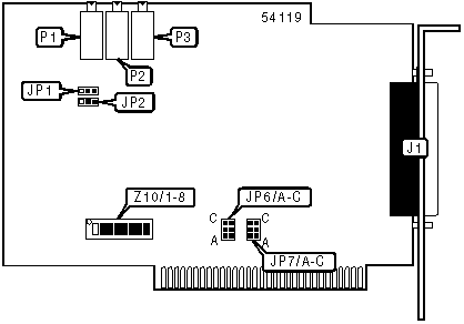 A total of 64 base address settings are available. The switches are a binary representation of the decimal memory addresses. Z10/1 is the Most Significant Bit and switch Z10/6 is the Least Significant Bit. The switches have the following decimal values: Z10/1=512, Z10/2=256, Z10/3=128, Z10/4=64, Z10/5=32, Z10/6=16. Turn off the switches and add the values of the switches to obtain the correct memory address. (On=1, Off=0)