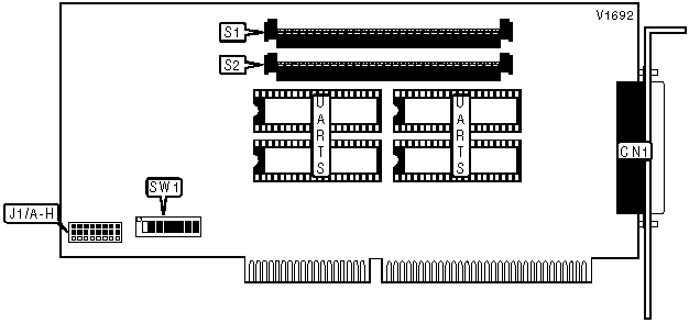 Note: When port 1 is configured as COM1 & port 2 is configured as COM2, SW1/8 should be in the off position. IRQ4 (COM1) should have channel A settings & IRQ3 (COM2) should have channel B settings. If only one of the first two ports is configured as COM1 or COM2, the other jumper can be moved or removed according to the requirements of the software being used. | |||||