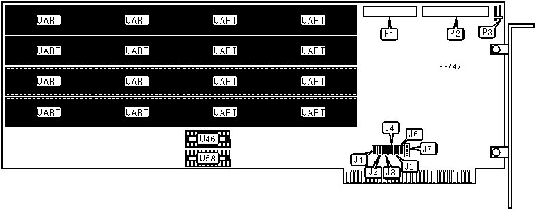 Note:The base I/O address is fixed by the programmed array logic chips installed in U46 and U58. | ||