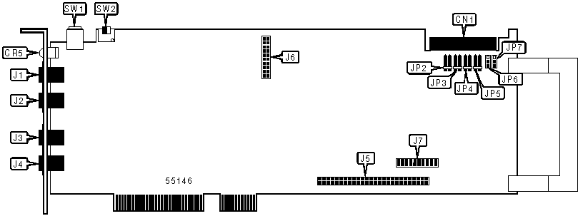 RJ-11 jacks (4), CTbus interface, 52-pin connector, 20-pin connectors (2) |