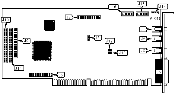 CD-ROM audio in (3), CD-ROM interface (3), game/MIDI port, line in, line out, microphone, wavetable connector (2) |