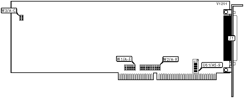 Note: A total of 255 base address settings are available. The switches are a binary representation of the decimal memory addresses. Switch A9 is the Most Significant Bit and switch A5 is the Least Significant Bit. The switches have the following decimal values: switch A9=512, A8=256, A7=128, A6=64, A5=32. Turn off the switches and add the values of the switches that are off to obtain the correct memory address. (Off=1, On=0) | ||||||