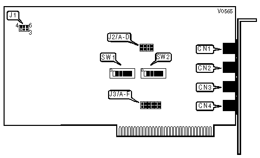 Note (1): The address range for the QS-200M/300M is from 0 to FFFFh. The switches are a binary representation of the addresses. When a switch is off, the corresponding bit is set to 1 and has the following decimal value: SW1/1=8, SW1/2=4, SW1/3=2, SW1/4=1, SW1/5=8, SW1/6=4, SW2/1=2, SW2/2=1, SW2/3=8, SW2/4=4, SW2/5=2. The QS-200M/300M requires 32 consecutive address locations for all four serial ports. Note (2): The base address selected above is for Port 1. To obtain the addresses for the other ports, add to the Port 1 address the following numbers: Port 2 address = Port 1 address + 8 Port 3 address = Port 1 address + 16 Port 4 address = Port 1 address + 24 | ||||