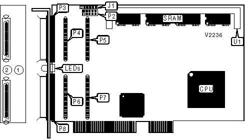 Note:Installing the DRAM module disables the on-board SRAM. Standard serial connectors to match the interface modules are provided by adapter cables. | |||
