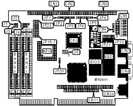 Floppy drive interface, IDE interface, parallel port, serial ports (2)
