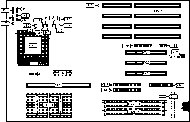 32-bit PCI slots (3), floppy drive interface, green PC connector, IDE interfaces (2), parallel port, serial ports (2), cache slot |