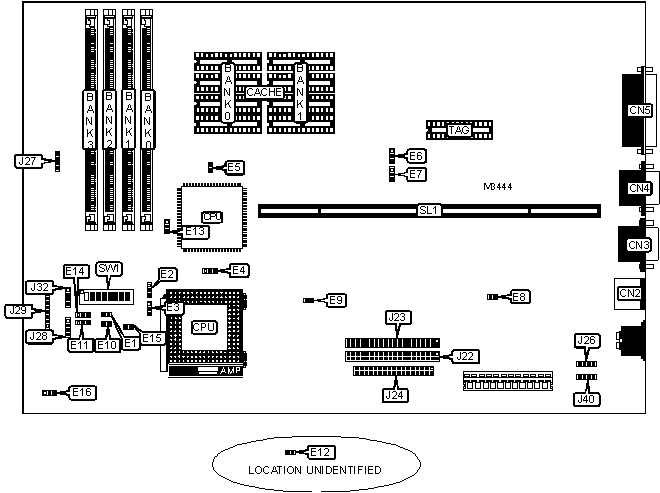 Note: Pins designated should be in the closed position. The location of E12 is unidentified. The above jumpers may not be present on all boards. If these jumpers are not present, only Intel CPUs may be used. | ||||||
