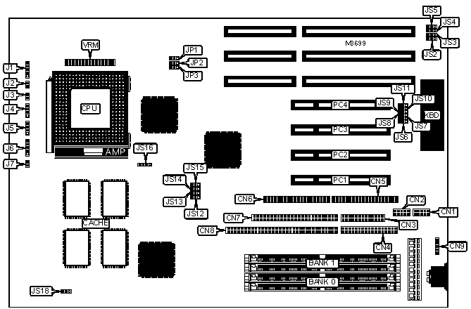 Note: Board accepts EDO memory. Board also accepts x 32 SIMMs. | ||