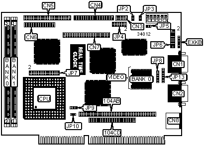 Floppy drive interface, green PC connector, IDE interface, parallel port, PS/2 mouse port/keyboard, serial ports (2), VGA port, flat panel connector, PC104 connectors (2) |