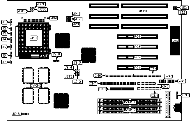 Note: Board accepts EDO memory. Board also accepts x 32 SIMMs. | ||