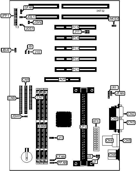 Note: Board accepts EDO & SDRAM memory. 512MB maximum if using EDO memory. 1024MB maximum if using EDO memory. | |||