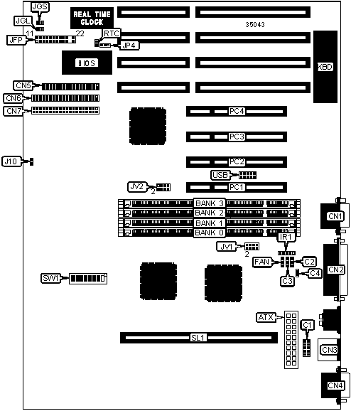 Note: Board accepts EDO memory. Board will not accept SDRAM.