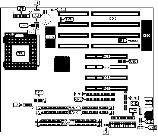 Note: Board accepts EDO memory. Banks 0 & 1 are interchangeable. | |||