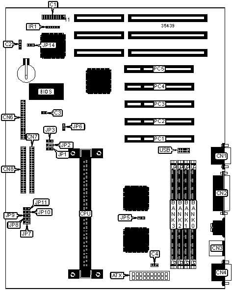 32-bit PCI slots (5), floppy drive interface, green PC connector, IDE interfaces (2), parallel port, PS/2 mouse port, serial ports (2), IR connector, USB connectors (2), ATX power connector |