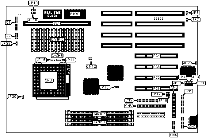 32-bit PCI slots (3), floppy drive interface, green PC connector, IDE interfaces (2), parallel port, PS/2 mouse port, PS/2 mouse interface, serial ports (2), cache slot |
