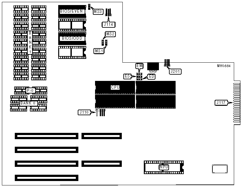Note:The settings G and V are silk-screened on the board. The actual pin connections are unknown. 1MB and 1.5MB configurations require the system memory card to be installed. | |||