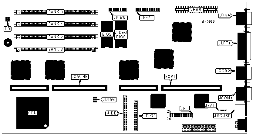 Bus mouse, cache card/shunt card slot, floppy interface, IDE interface, parallel port, riser card slot, serial ports (2), VGA port |
