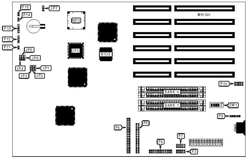 Floppy drive interface, IDE interface, Bus mouse port parallel port, serial port (2), VGA port |