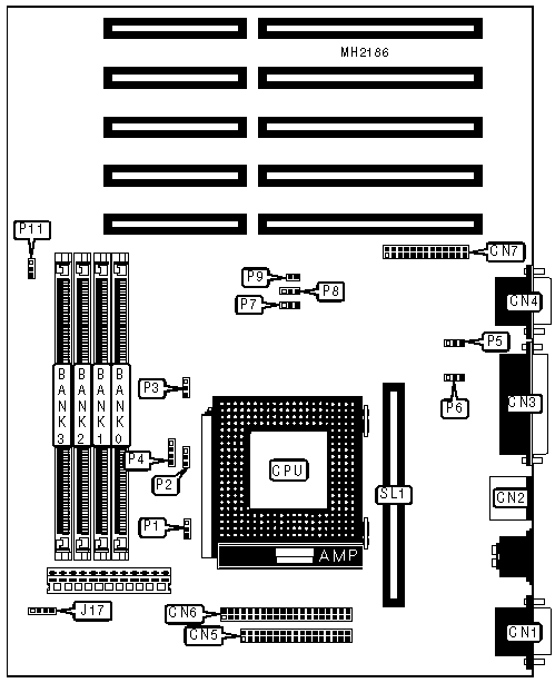 Note: When 64MB of memory is installed, Bank 0 is ignored. Do not remove the 1M x 36 from Bank 0. | ||||