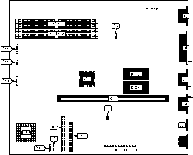 Riser card slot, floppy drive interface, IDE interface, parallel port, PS/2 mouse port, serial ports (2), VGA port