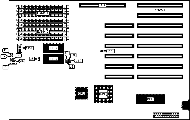 Note: In order to use 16MB memory, install memory card at SL1. Pins designated should be in the closed position.