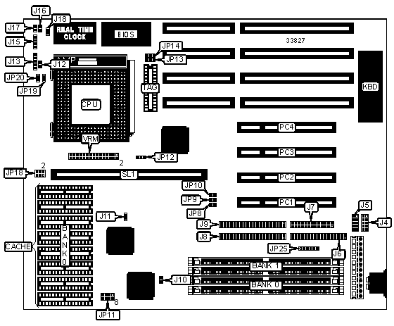 Note: Board accepts EDO memory. Board also accepts x 32 SIMMs. | ||