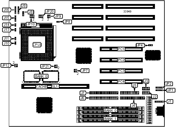 Note: Board accepts EDO memory. Board also accepts x 32 SIMMs. Banks are interchangeable. |