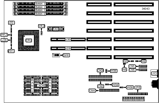 32-bit VESA local bus slots (2), floppy drive interface, IDE interface (2), parallel port, PS/2 mouse port, serial ports (2)