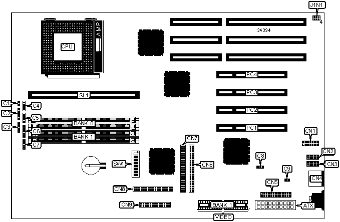 32-bit PCI slots (4), floppy drive interface, green PC connector, IDE interfaces (2), parallel port, PS/2 mouse port, serial ports (2), VESA feature connector, VGA interface, cache slot, IR connector, ATX power connector |