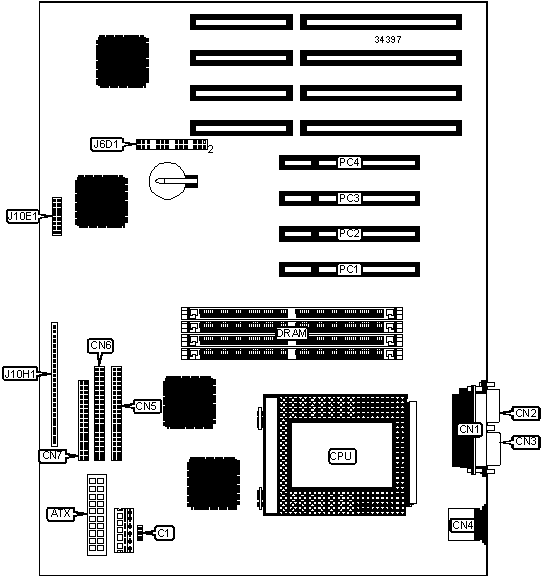 32-bit PCI slots (4), floppy drive interface, IDE interfaces (2), parallel port, PS/2 mouse port, serial ports (2), ATX power connector |