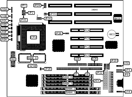 32-bit PCI slots (4), floppy drive interface, green PC connector, IDE interfaces (2), parallel port, PS/2 mouse interface, serial ports (2), IR connector, USB connectors (2), ATX power connector