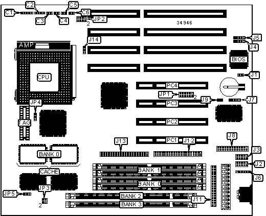 Note: Board accepts EDO memory. Do not install SIMMs & DIMMs at the same time. | ||