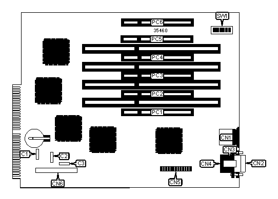 Note: Board accepts EDO memory. Above configuration is for the onboard memory. The maximum memory available on the memory card is unidentified.