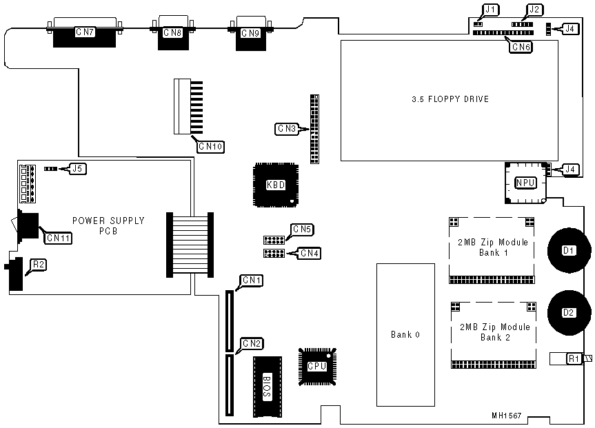 Note:1MB DRAM is soldered to the system board, 2MB ZIP modules can be installed the additional memory will be detected via the system BIOS. | |||