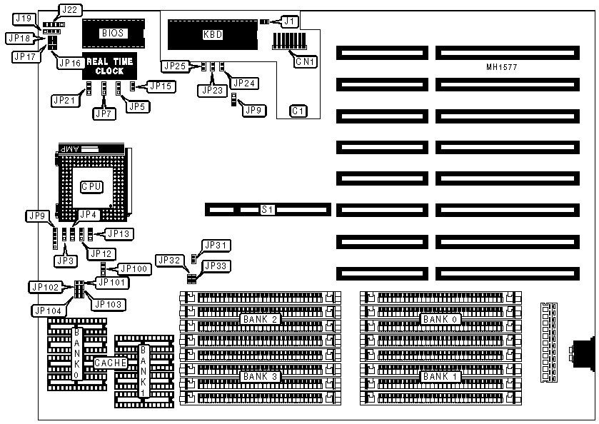 32-bit VESA local bus slot, keyboard controller/daughter card |